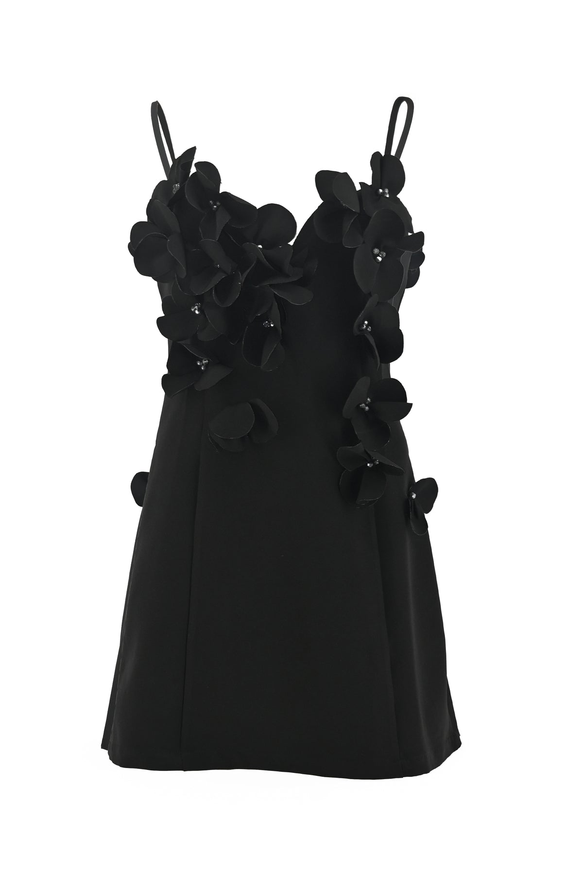 Turn heads in the Blair Dress. This bold black mini dress features spaghetti straps and handmade fabric flowers for a flirty, feminine touch. Designed to hug your curves, it’s perfect for nights out, summer parties, and every main character moment. Pair it with heels for a glamorous look or flats for effortless chic. No matter where you go, Blair makes sure all eyes are on you