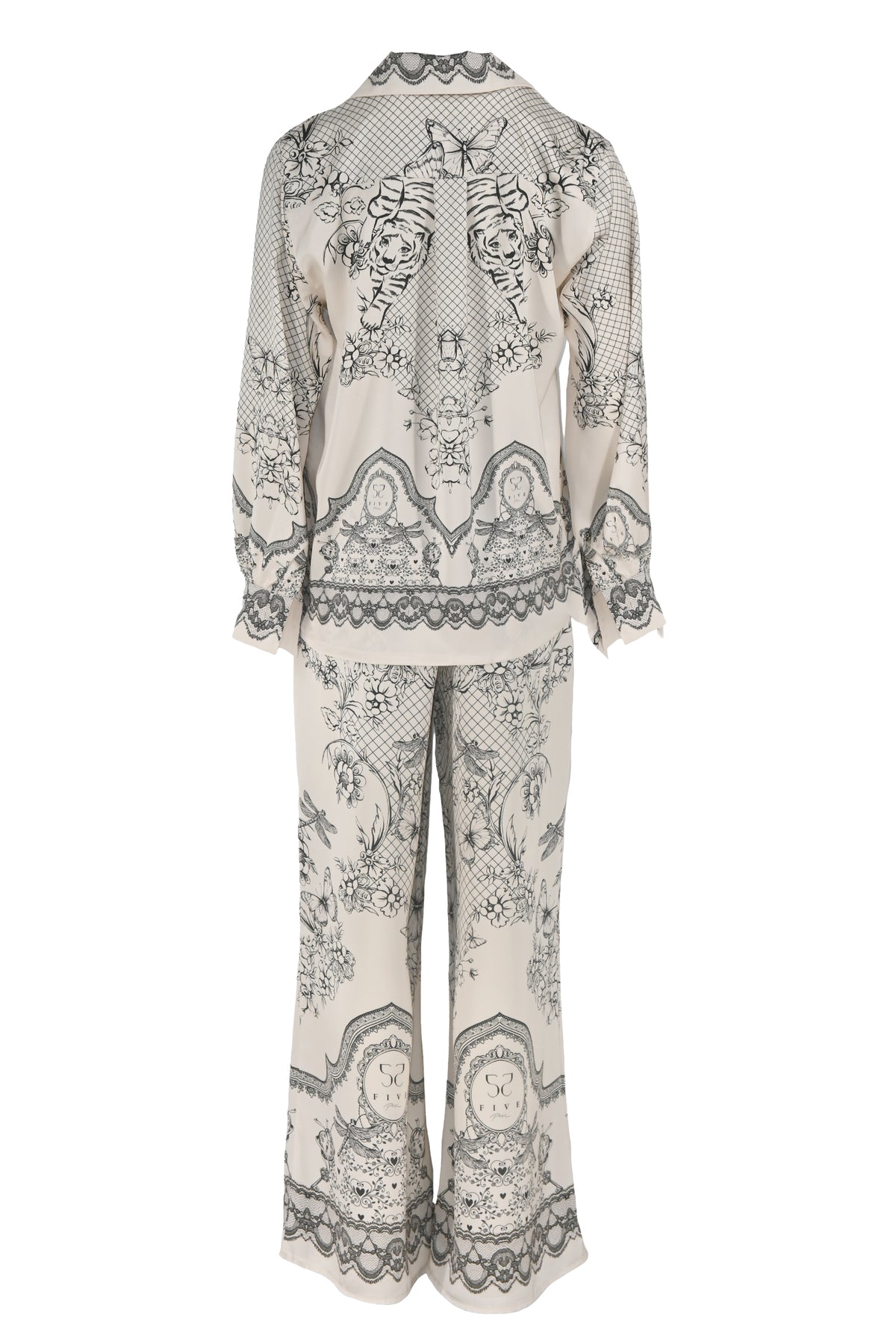 Embrace your wild side with the Roar Satin Set—a luxurious two-piece ensemble designed for those who dare to stand out. This sophisticated collection features an oversized satin shirt paired with matching elastic-waist pants, both adorned with an exclusive tiger print that captures strength and elegance in perfect harmony.