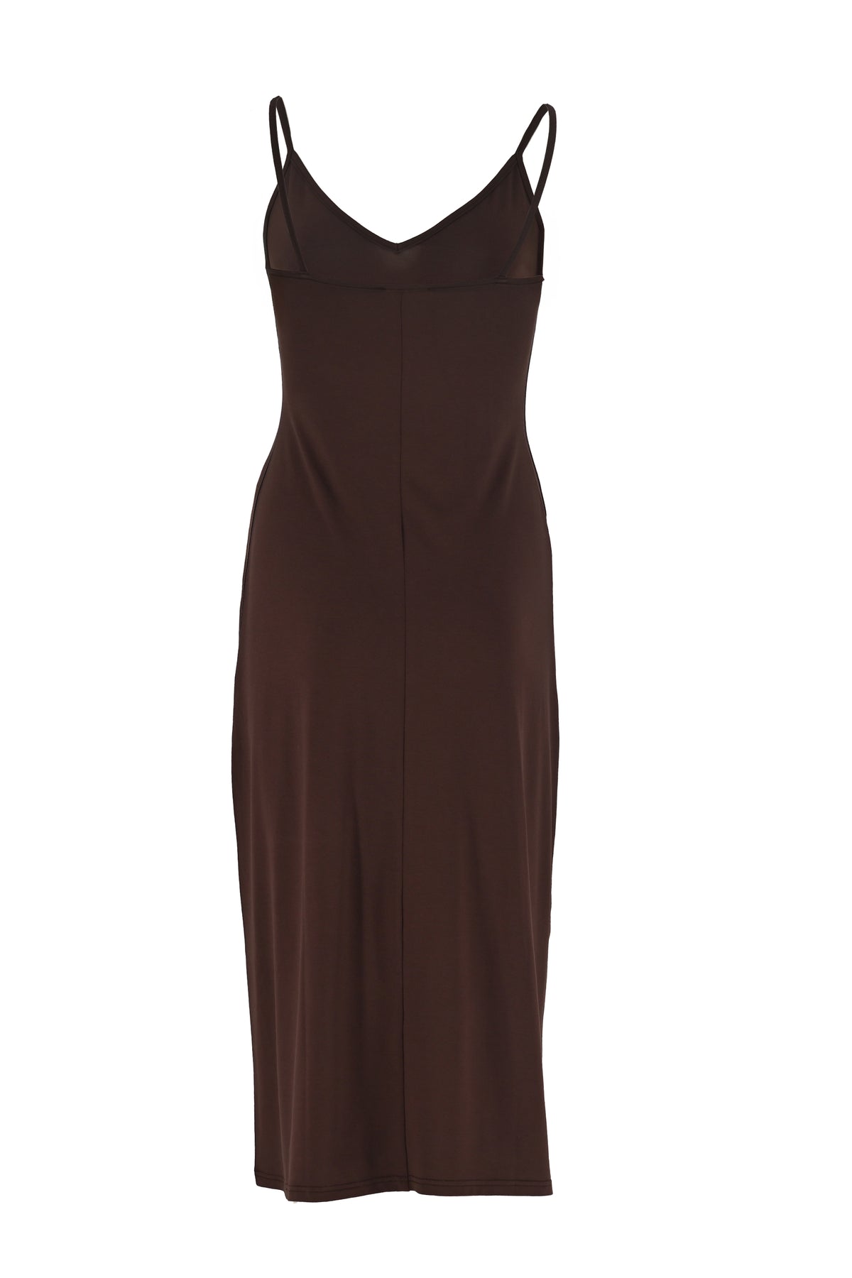 Embrace effortless elegance with the Aperitivo Brown Dress, a maxi ruffled silhouette designed to transition seamlessly from day to night. Its flowing fabric and long sleeves offer both comfort and sophistication, making it perfect for any occasion. Whether you're at a casual brunch or an evening event, this dress ensures you stand out with graceful movement and timeless style.