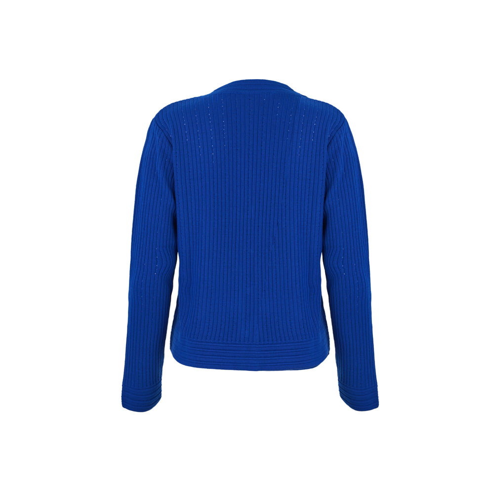 Wrap yourself in elegance with our exquisite blue cardigan. Crafted with the utmost care and attention to detail, this cardigan features delicate golden buttons that add a touch of sophistication and charm. The graceful V neckline complements the overall design, creating a look that's both classic and contemporary.